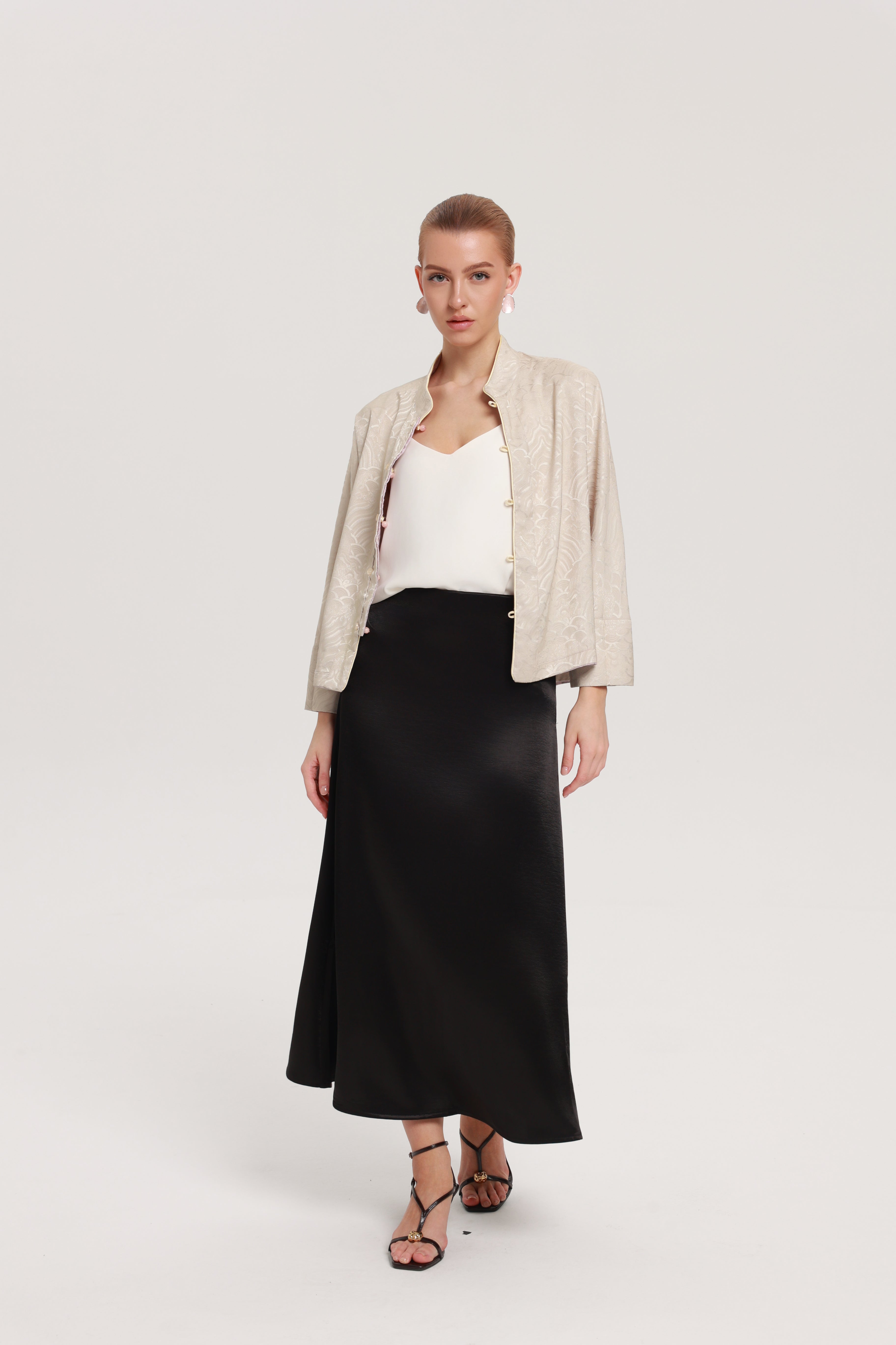 3.Understated Luxury in Motion: This is quiet sophistication perfected. The intricate jacquard patterns possess a fluid elegance, seeming to dance subtly with your movement, while the fabric exudes an innate radiance and refined luxury that shines from within.
